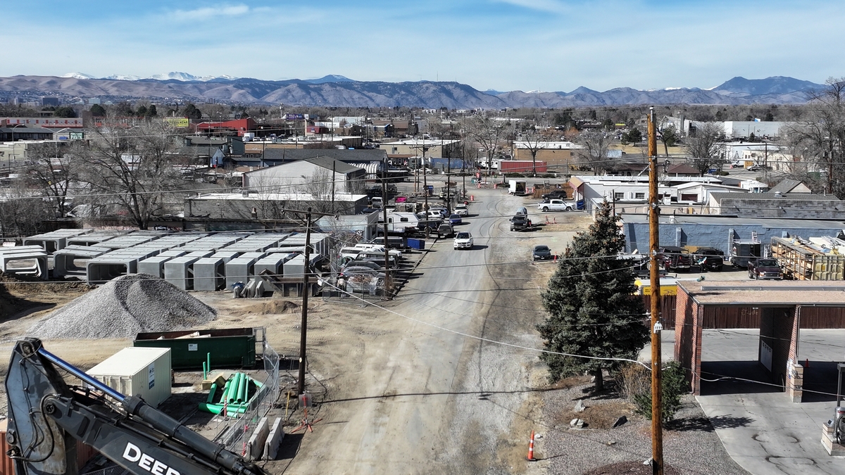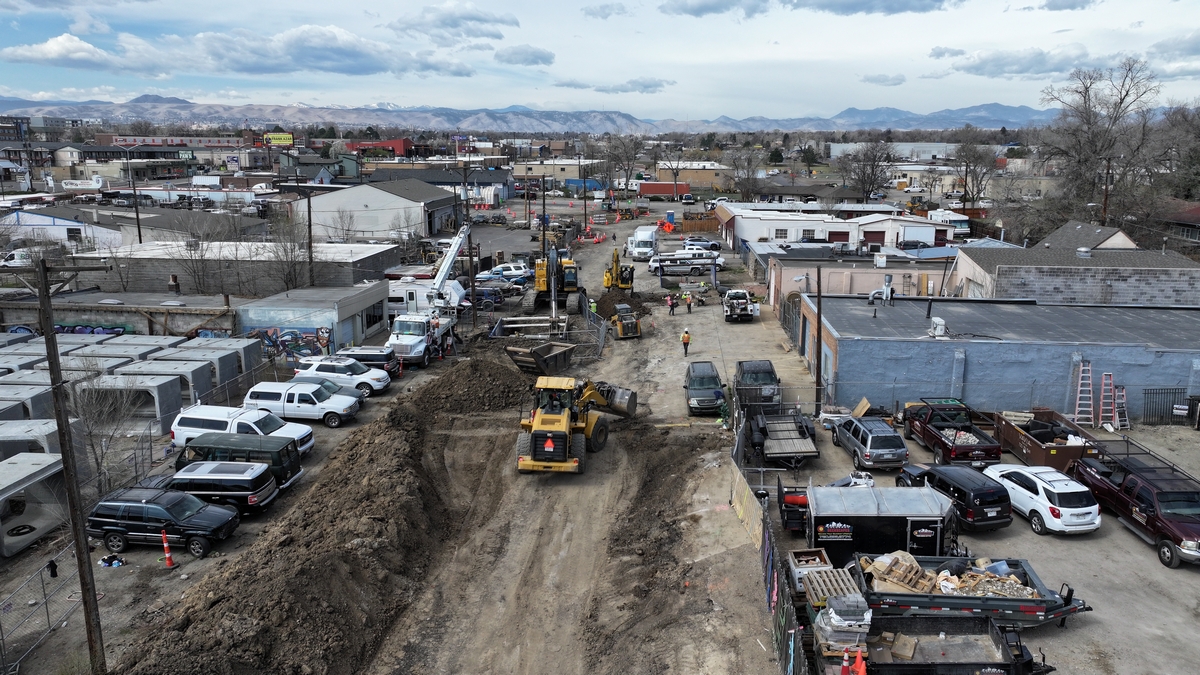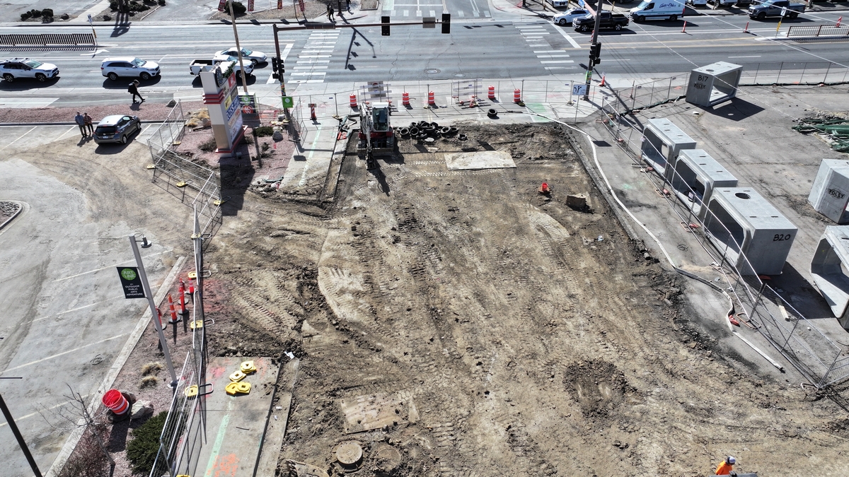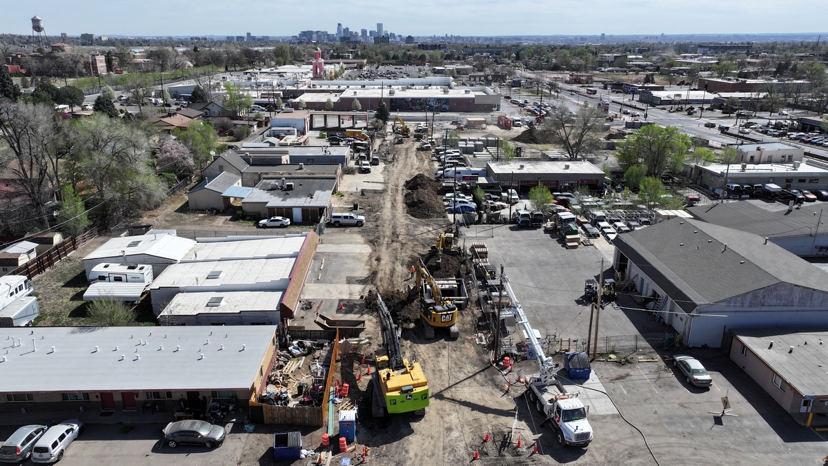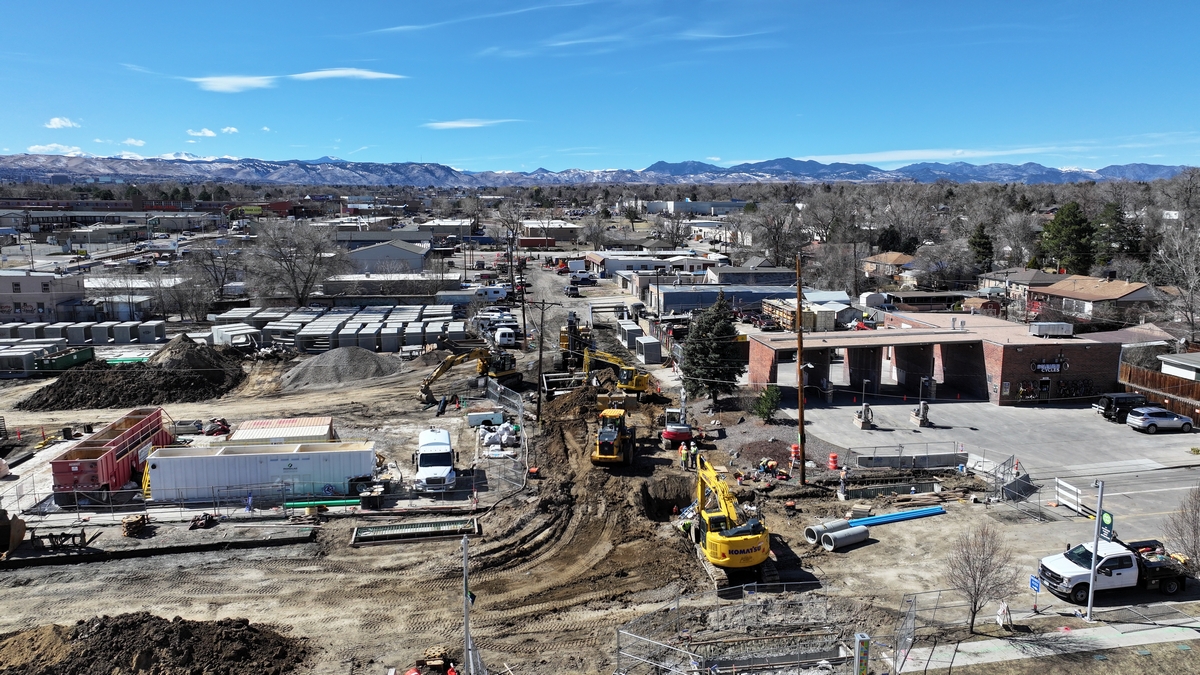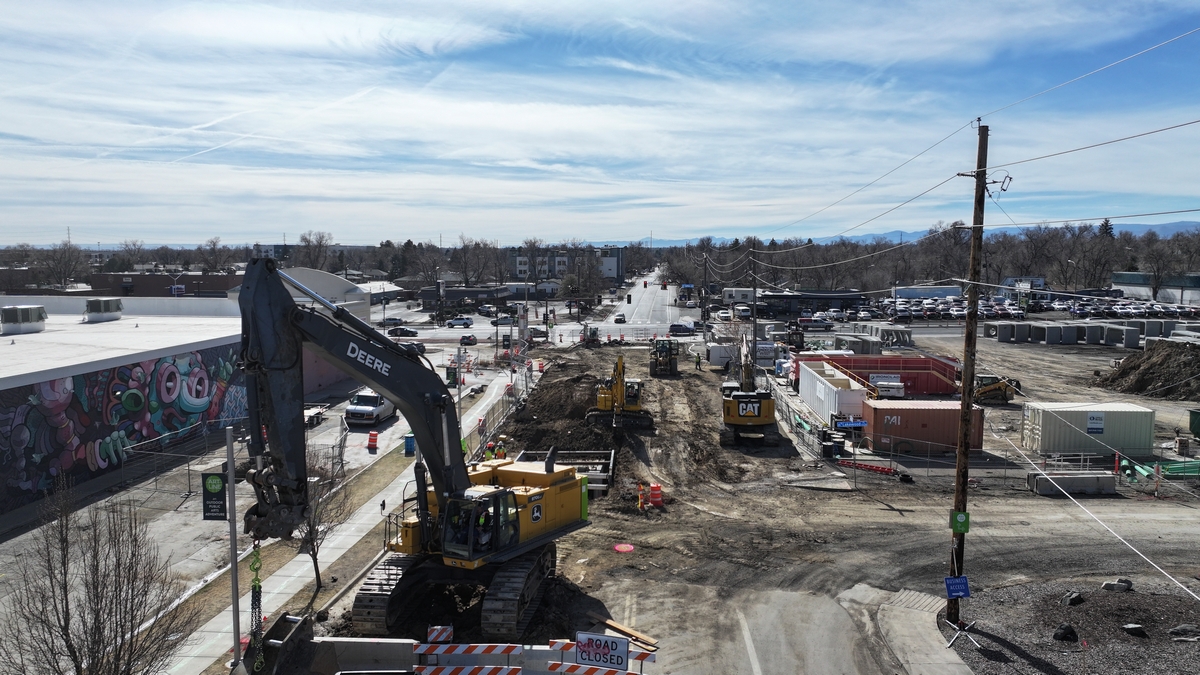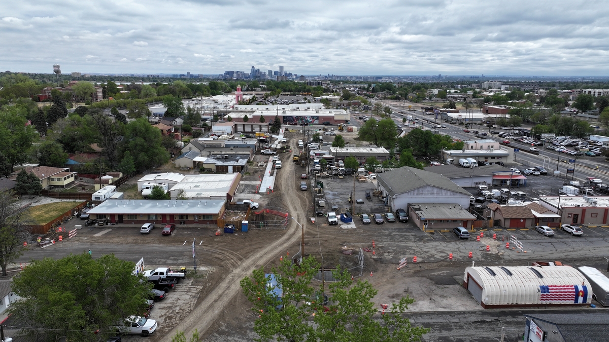 Aerial picture of the construction at Colfax and Pierce.