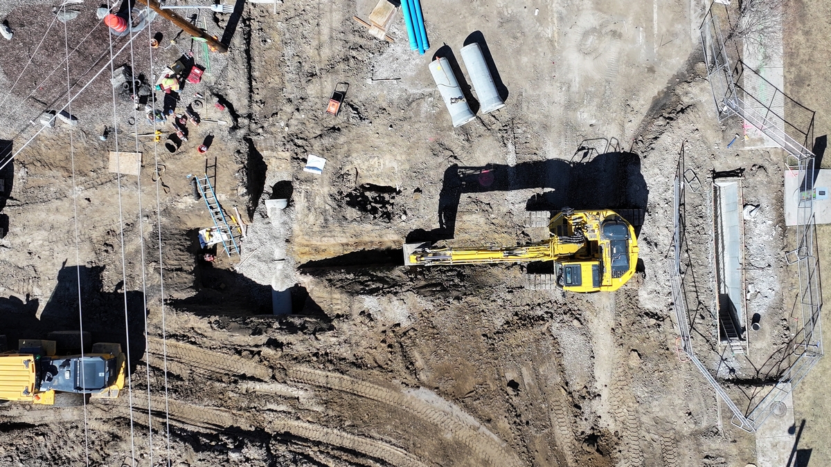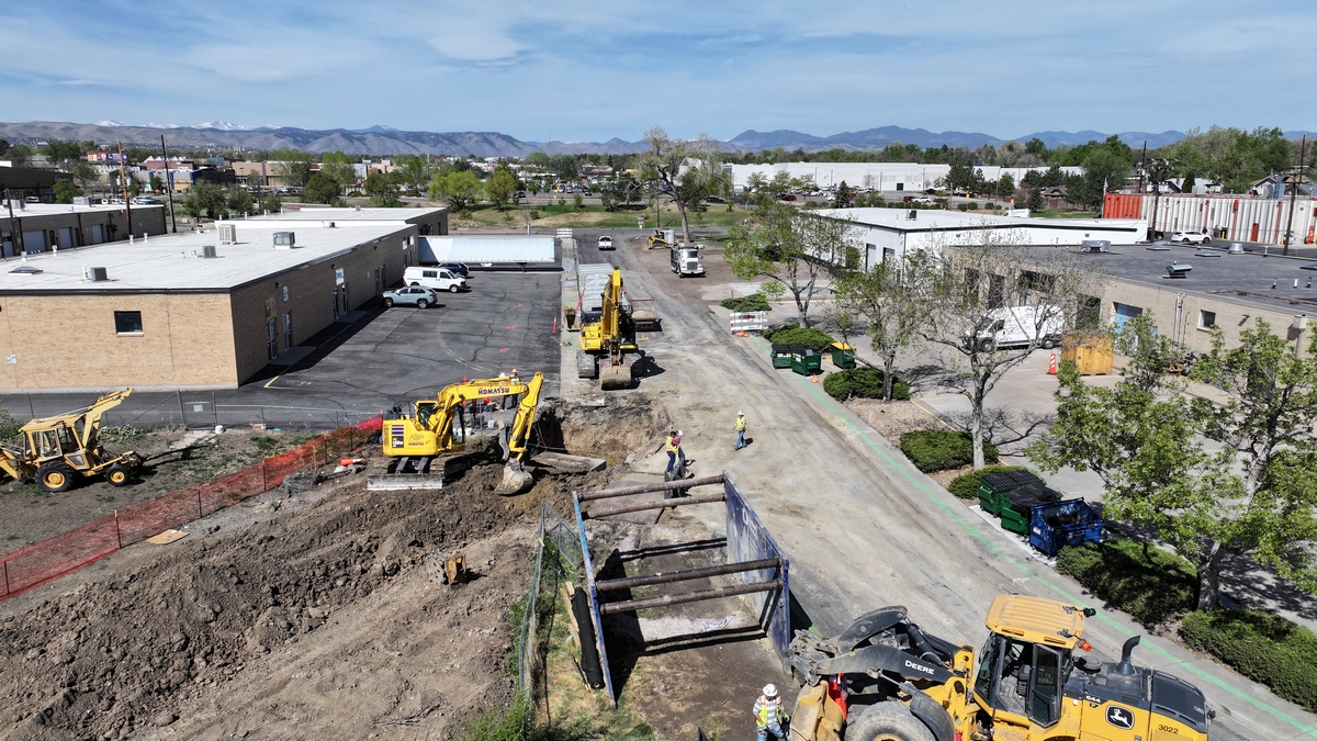 Aerial picture of the construction work on Lakewood Pl.
