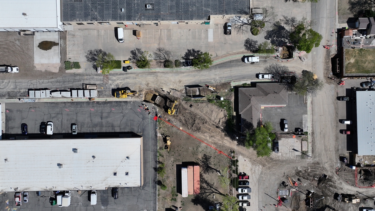 Top down drone picture from construction on Pierce St.
