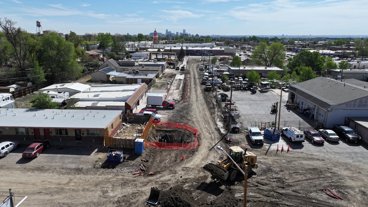Aerial picture looking west at the construction on Lakewood Pl.
